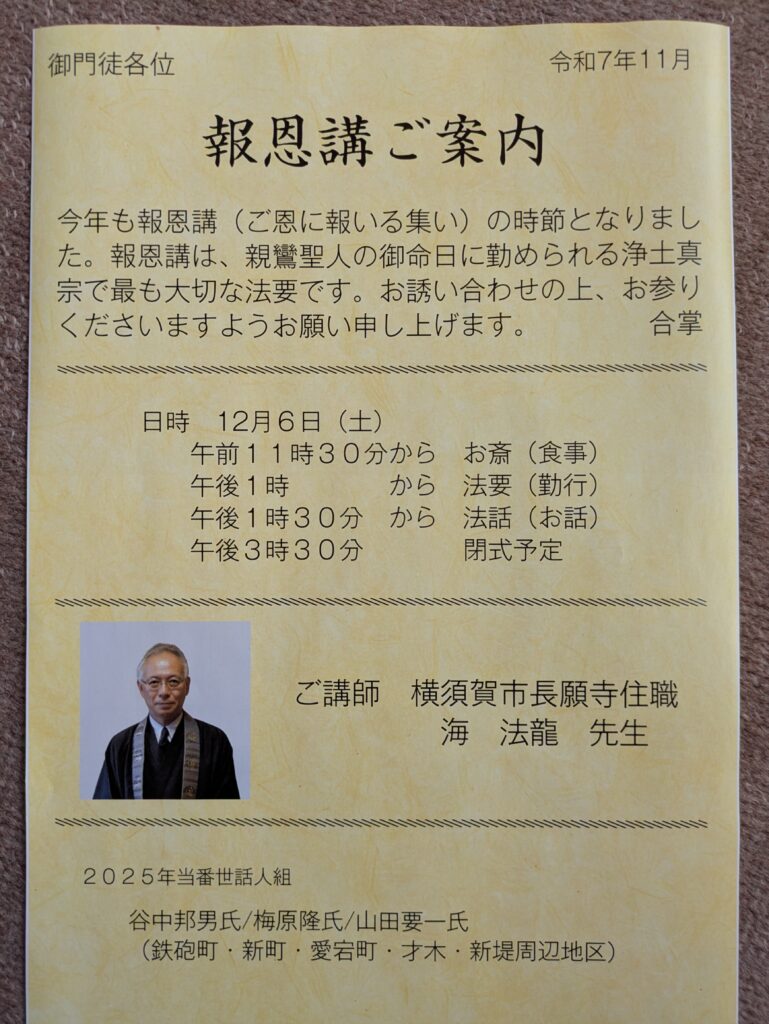 日頃忘れている「ご恩」をお互いに確認し合うのが報恩講です。